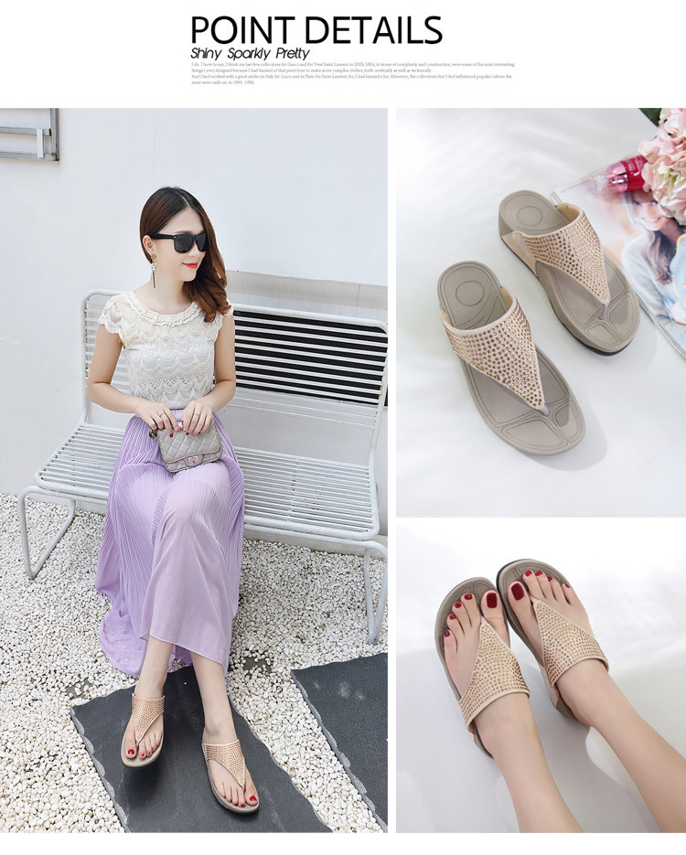 New 2023 AliExpress Casual Slippers Women's Cross-border Wedge Rhinestone Thick Bottom Large Size Flip-flops Women's Shoes Wholesale