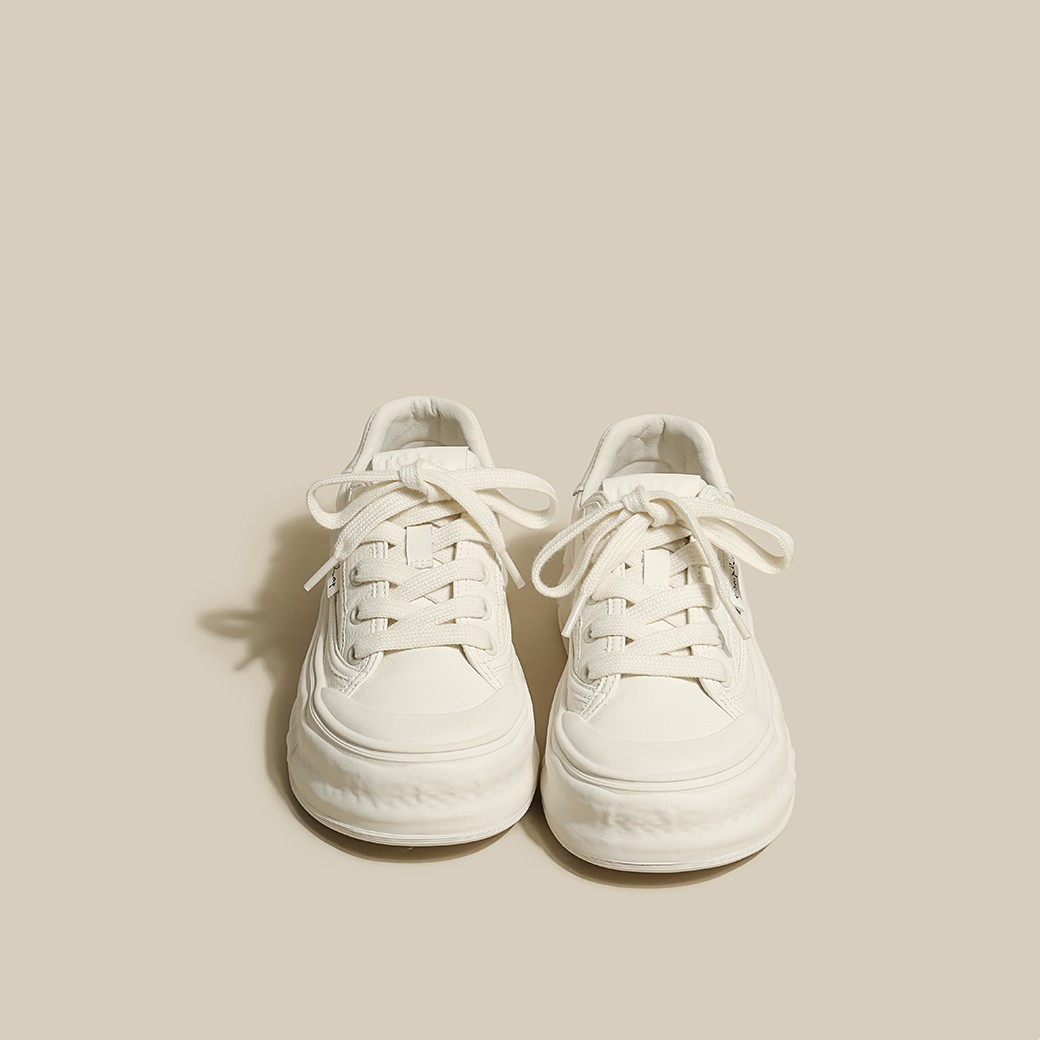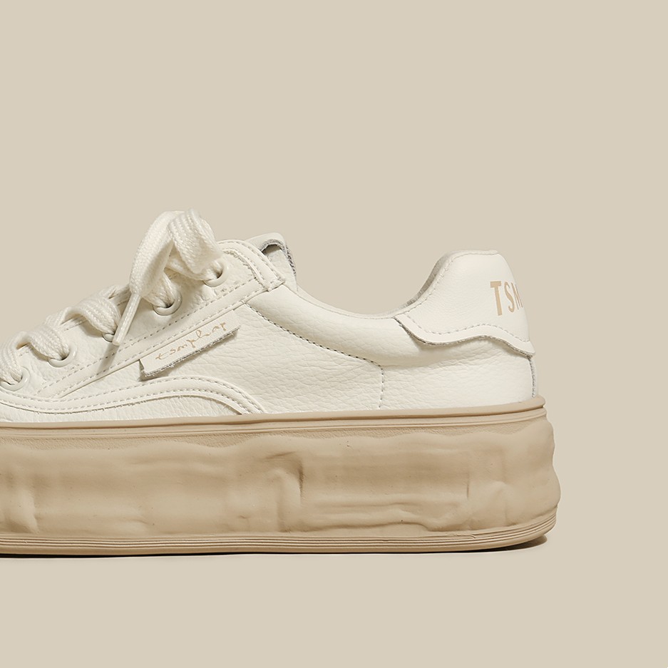 2023 Spring New Leather Round Toe Lace-up Sports And Leisure Sneakers Women's Muffin Thick-soled Simple White Shoes Single Shoes
