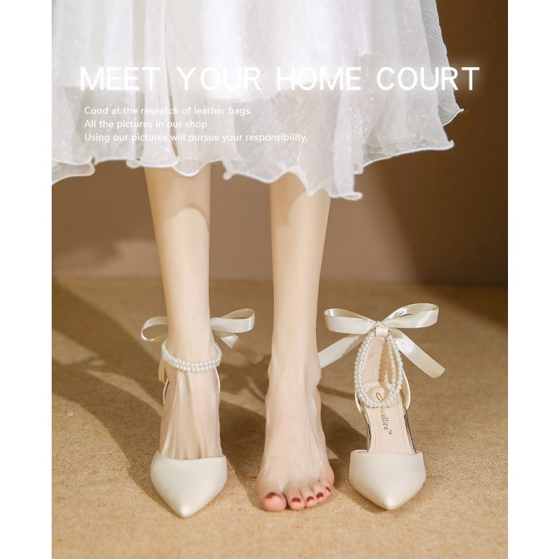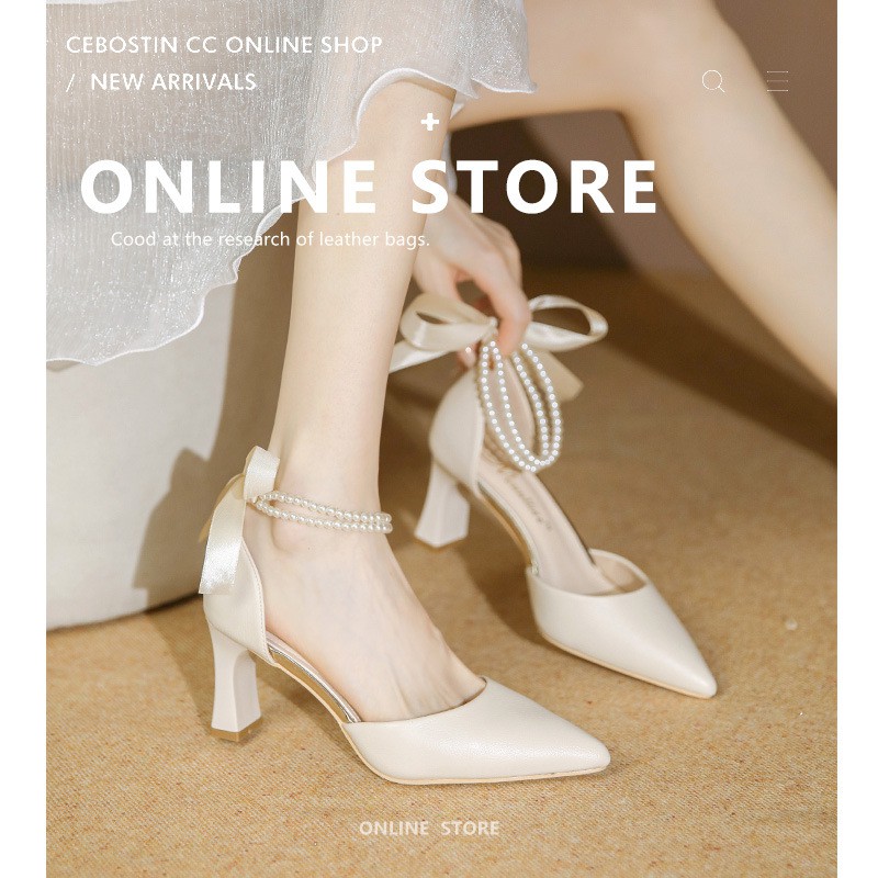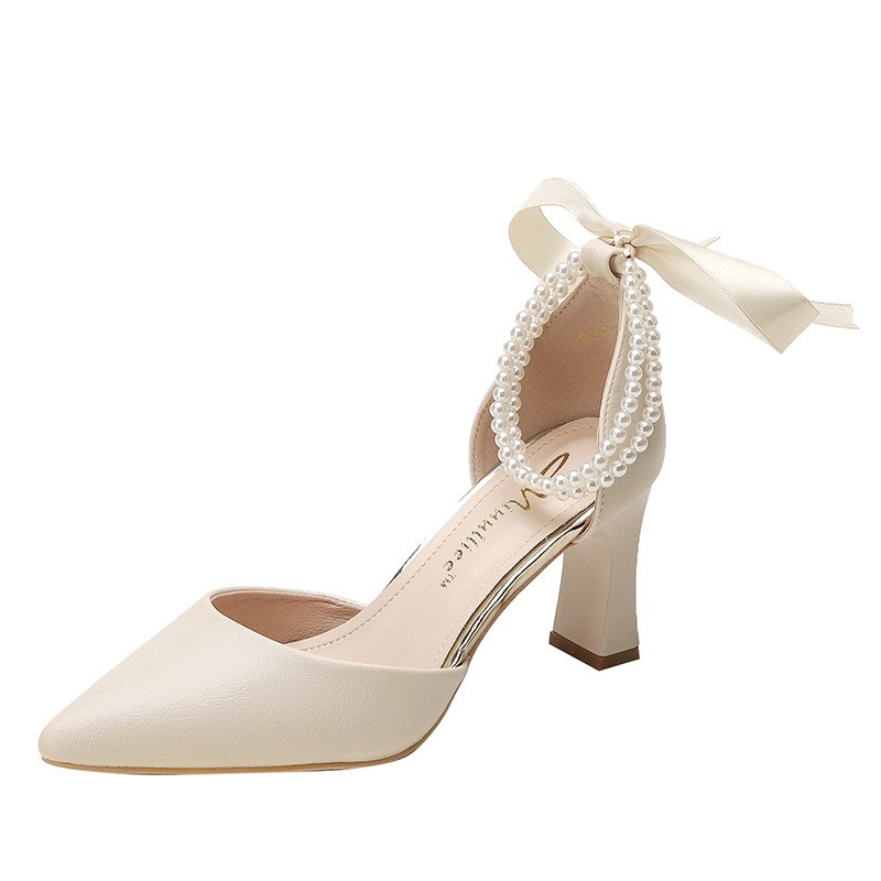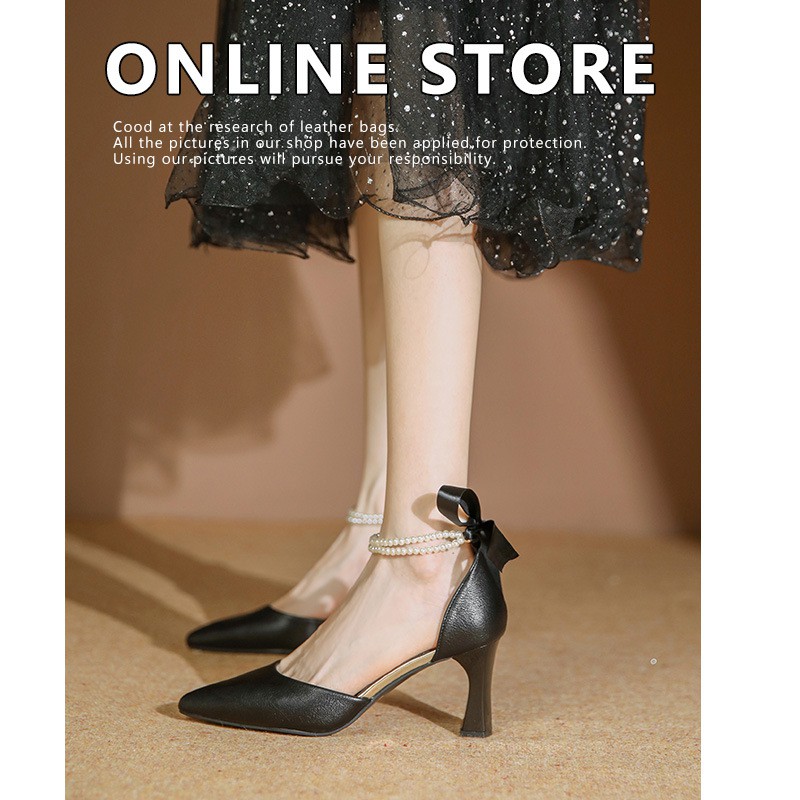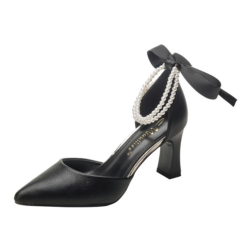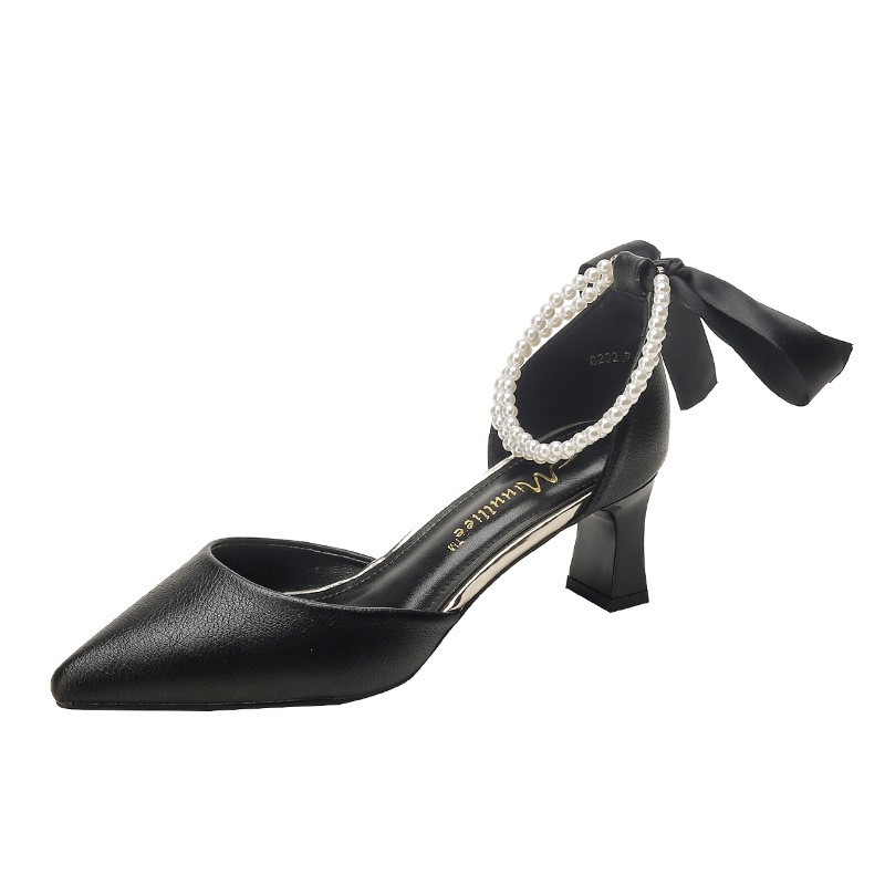 829212 New All-match High-heeled Shoes Women's Thick-heeled Hollow Black Professional Pointed One-word Buckle Women's Shoes French Style Shoes