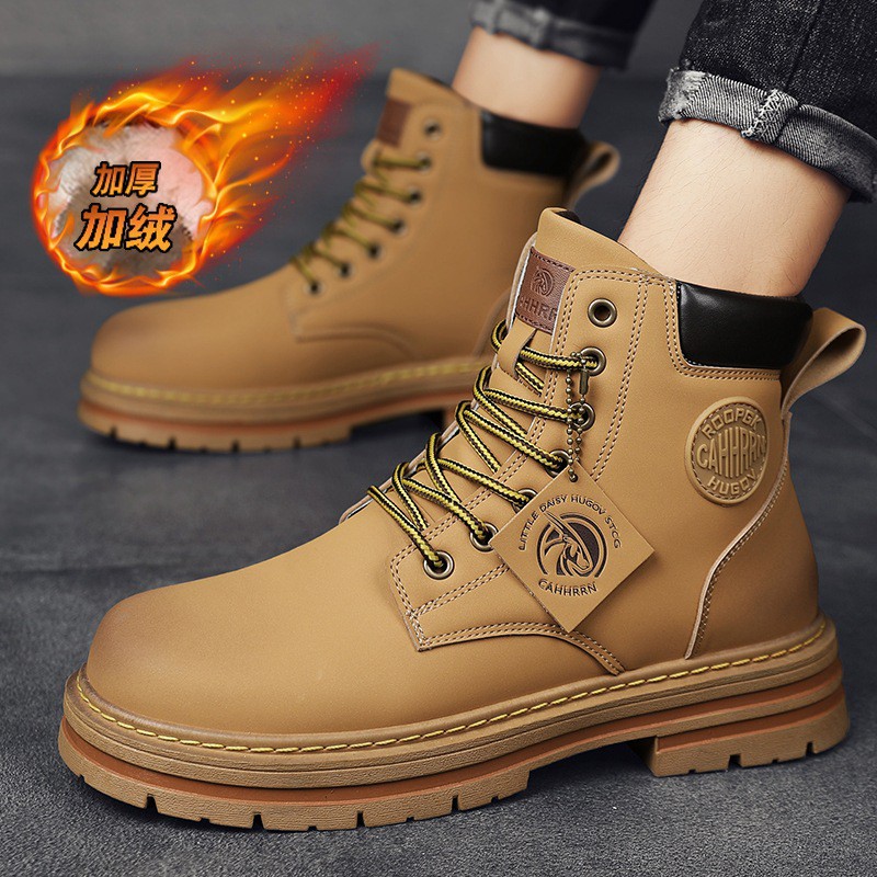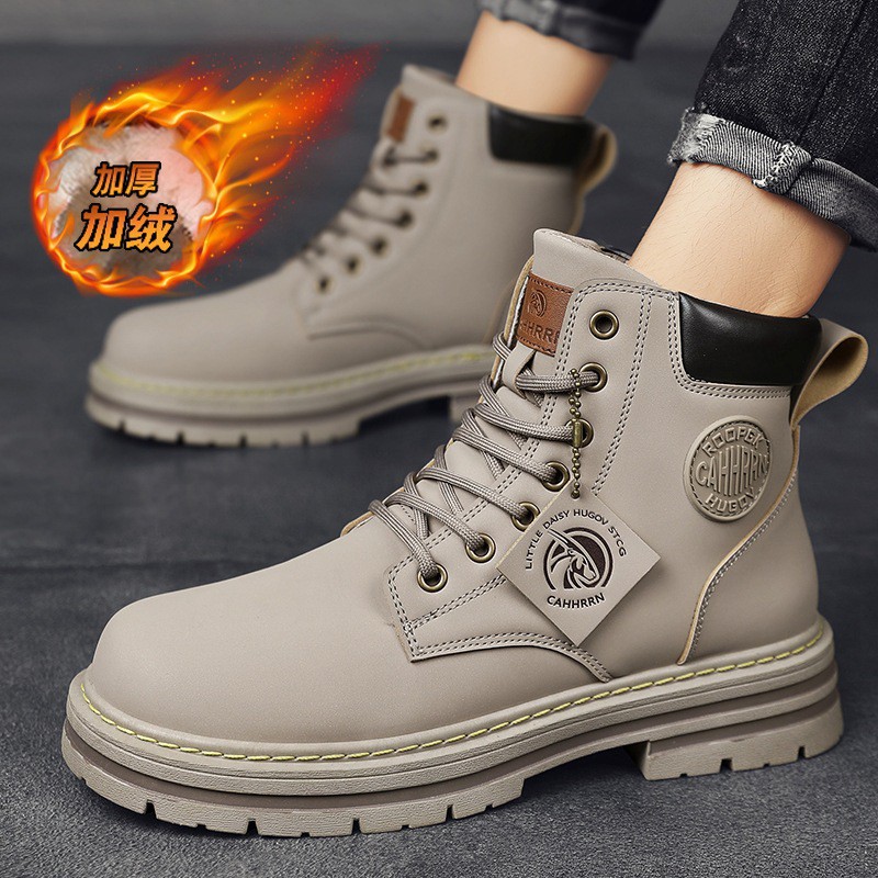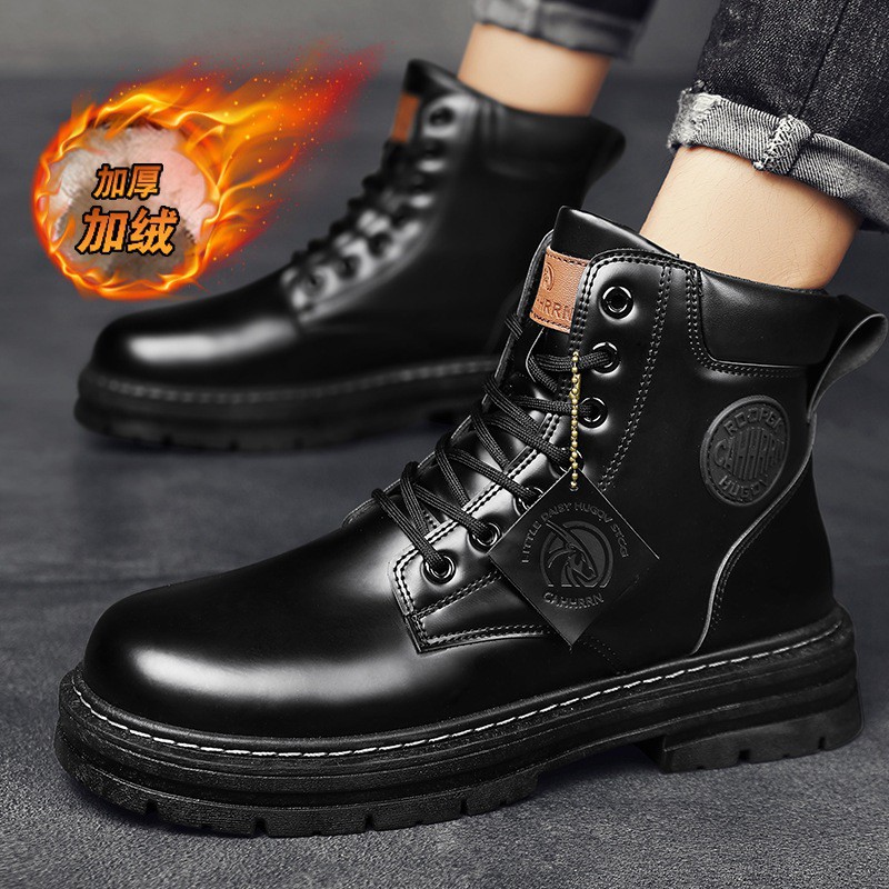 Big Head Martin Boots Men's Autumn And Winter High-top Tooling Boots Men's British Style Plus Velvet Men's Shoes Increase Height