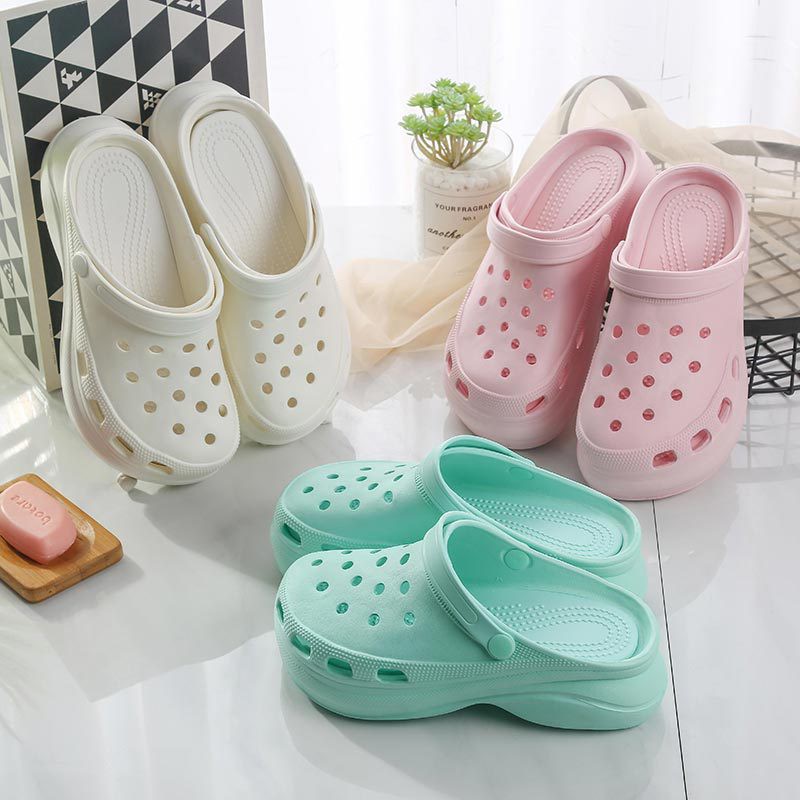 Hole Shoes Women's Baotou Heightening Garden High Heels Thick Bottom Light Beach Hole Daddy Sandals