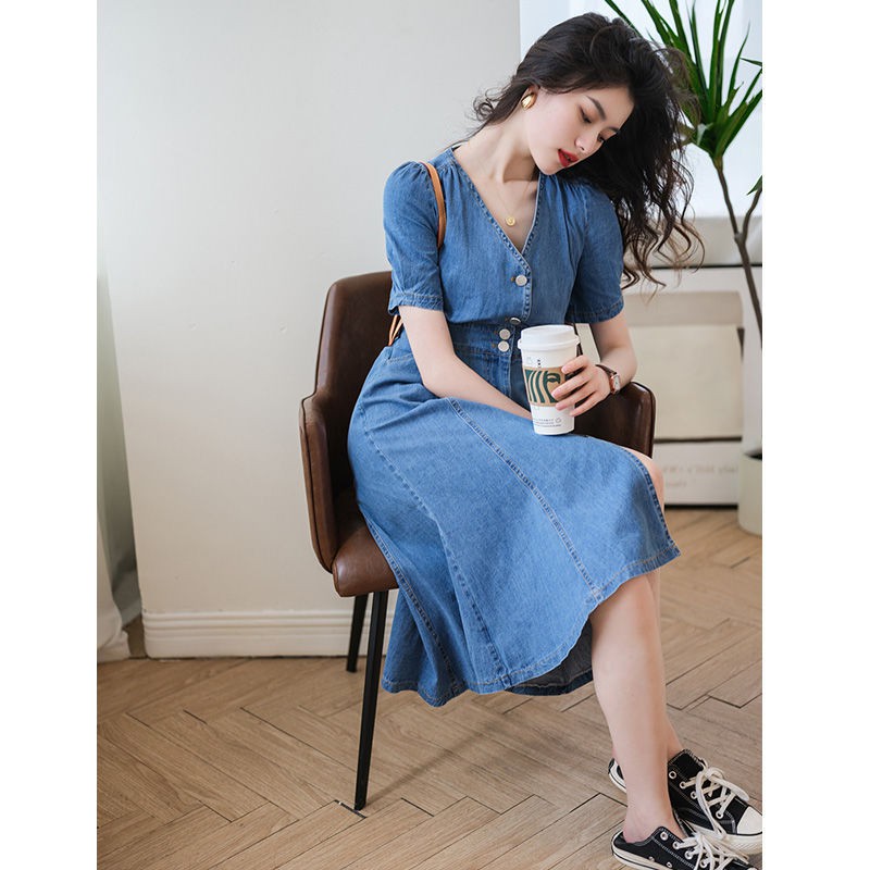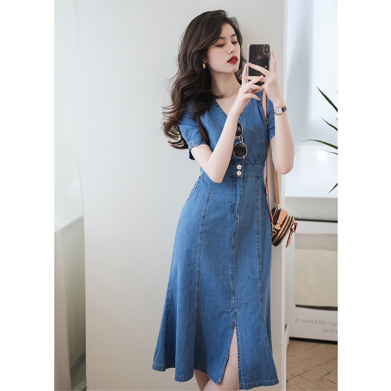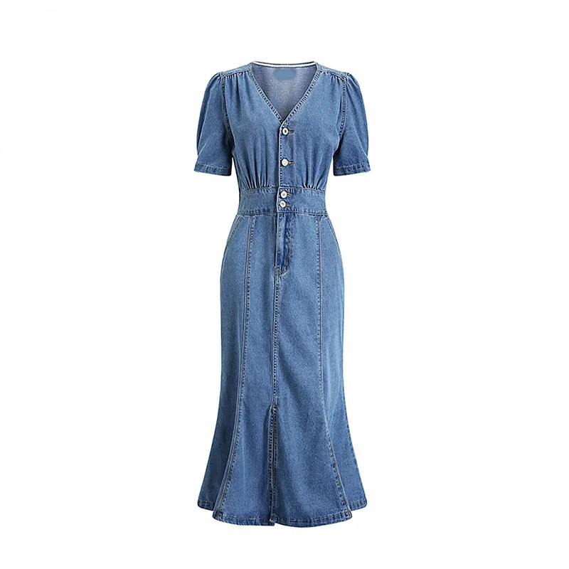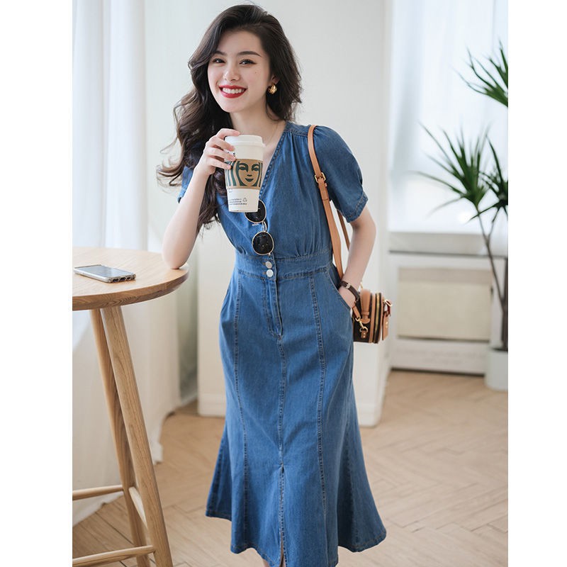 New French High-end Long Skirt Temperament Age-reducing Thin Section Waist Denim Dress Skirt