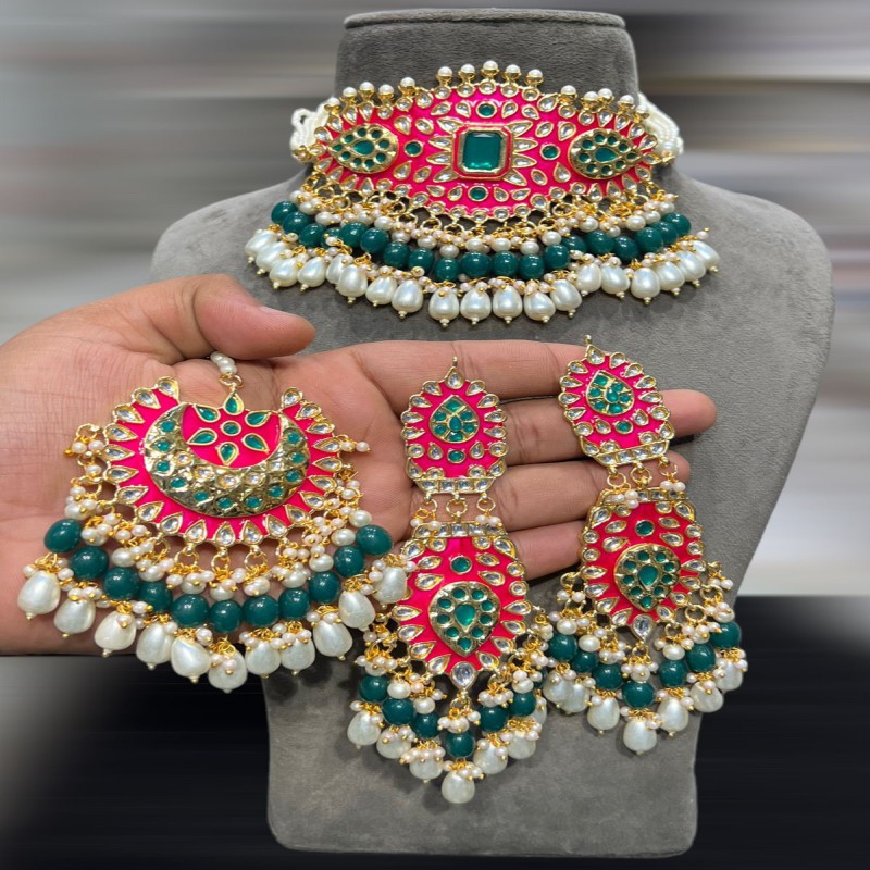 Featuring a necklace, ring, and a pair of earrings that adds an opulent charm.
