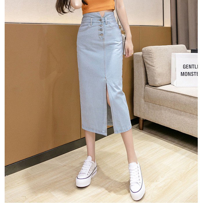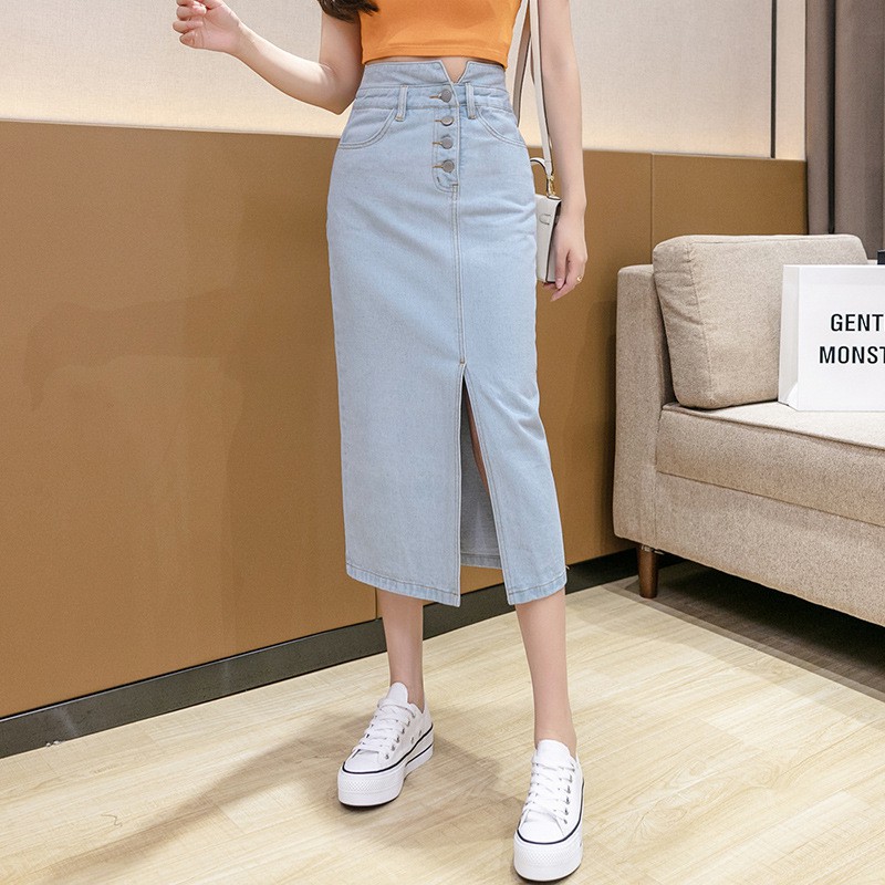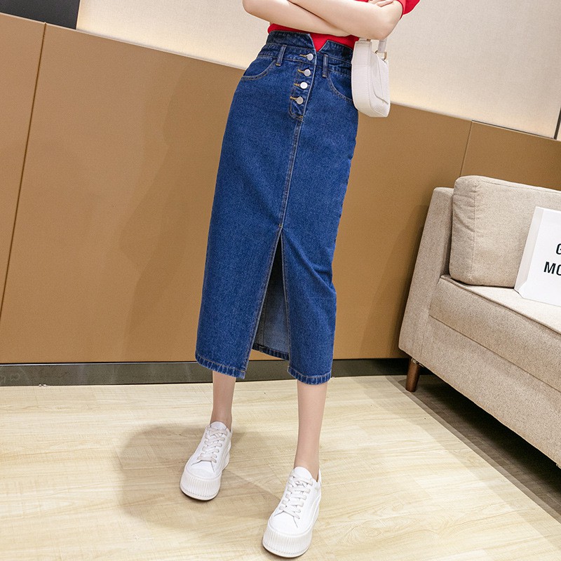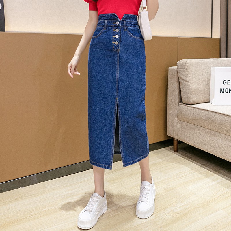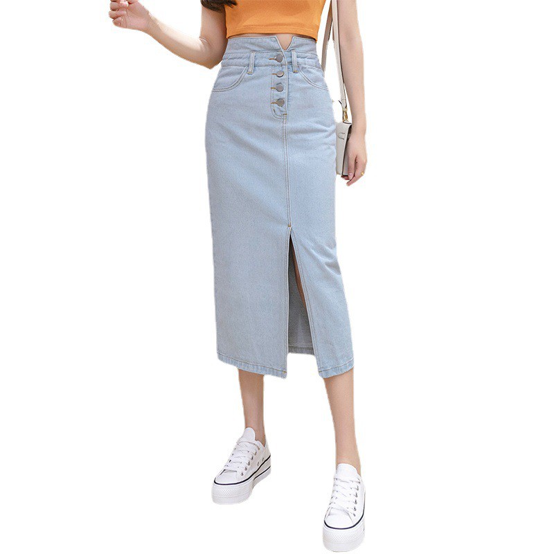 Skirt Women's Summer Dress Manufacturers' New Year's New Women's A-line Skirt Slim Mid-length High Waist Waist Tummy Slit Denim Skirt Women