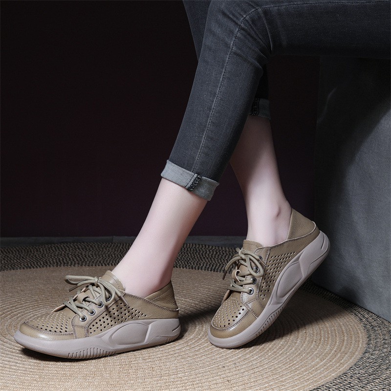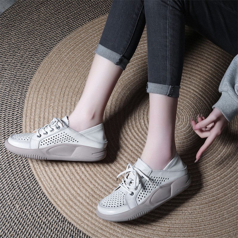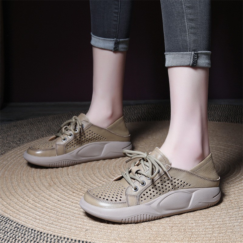 Sports And Leisure Leather Single Shoes Hollow Strap Sandals With Solid Color Women's Shoes One Shoe Two Wear