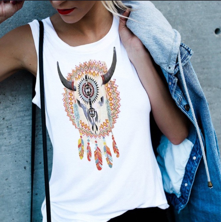 Summer New Strap Sleeveless Round Neck Printed Vest Female