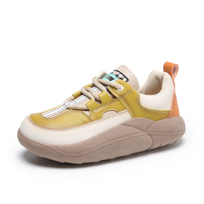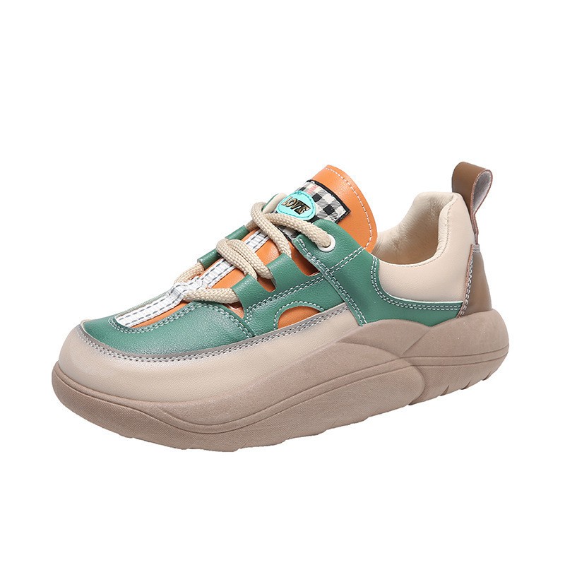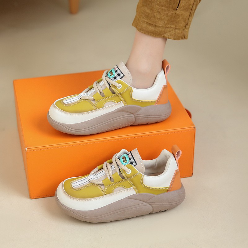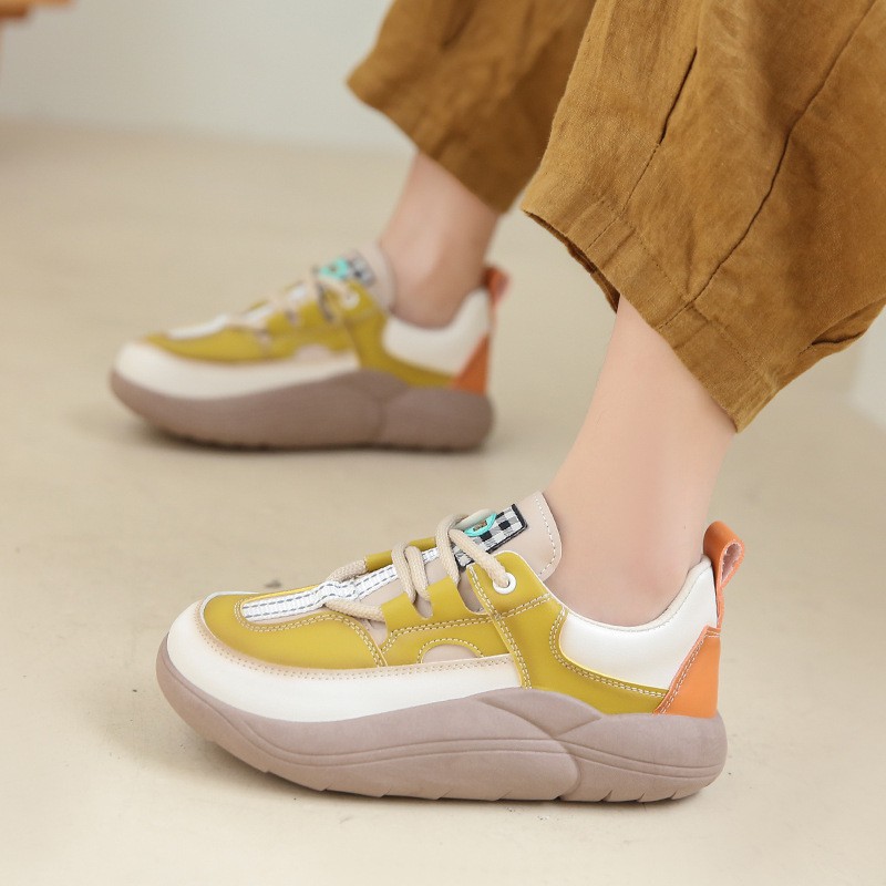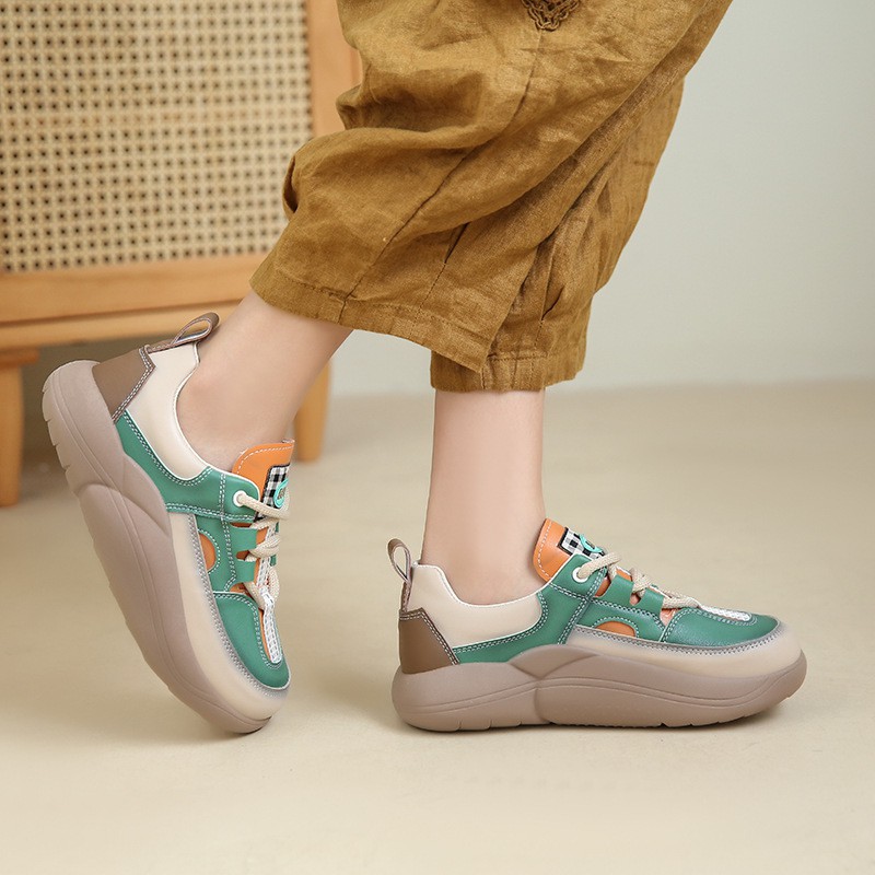 Thick-soled Leather Women's Shoes Spring And Autumn New Round Toe Casual Single Shoes Women's Color Matching Comfortable Platform Sole Shoes